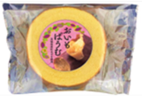 商品特徴:茨城県産紅あずまを生地に練りこんだしっとり食感のバウムクーヘン。