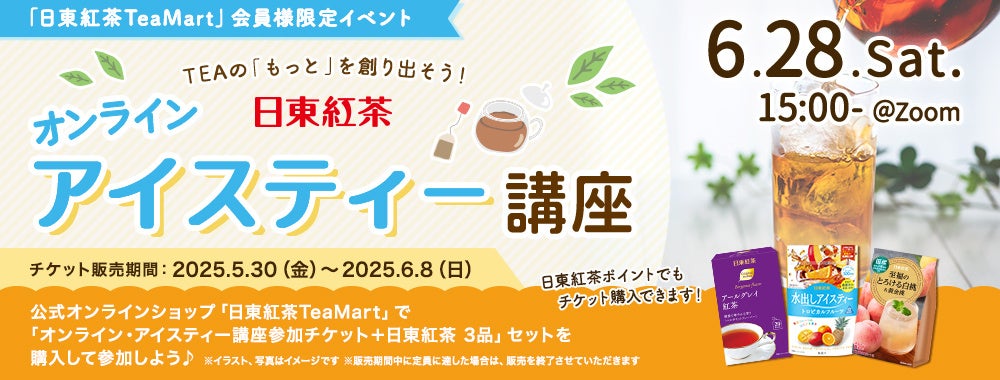 日東紅茶ブランドを展開する、三井農林株式会社(所在地:東京都港区 代表取締役社長:藤井 洋 以下、当社)では、日東紅茶TeaMart会員の皆さまと紅茶を楽しむ「日東紅茶 オンライン・アイスティー講座」を開催いたします。本イベントは、アイスティーを簡単においしくいれるコツや手軽なアレンジ、フルーツとのペアリングポイントなどについて、お好きな場所※で楽しんでいただけます。みなさまのご参加をお待ちしております。