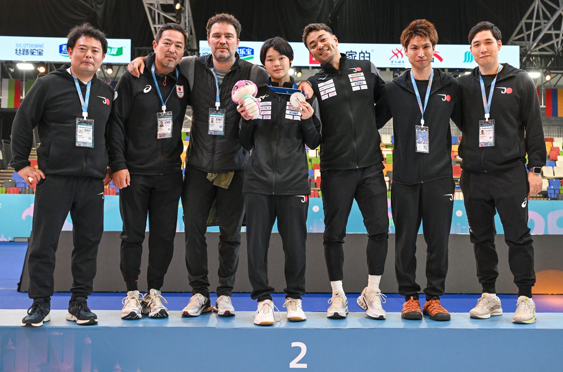 準々決勝で LUK(HKG)に15対5で圧勝。準決勝ではPANAZZOLO(ITA)に15対10、決勝ではYANG(USA)11対15で惜敗するも、見事銀メダルを獲得しました!