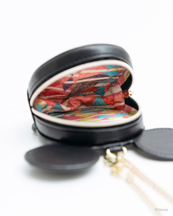 ミッキーマウスのフェイスポーチが初登場。高級感のある素材で内装はポップなアート作品がプリントされています。イヤホンや目薬、リップなどの収納にぴったりなアイテム。チャーム付きでパークでの使用もおすすめです。