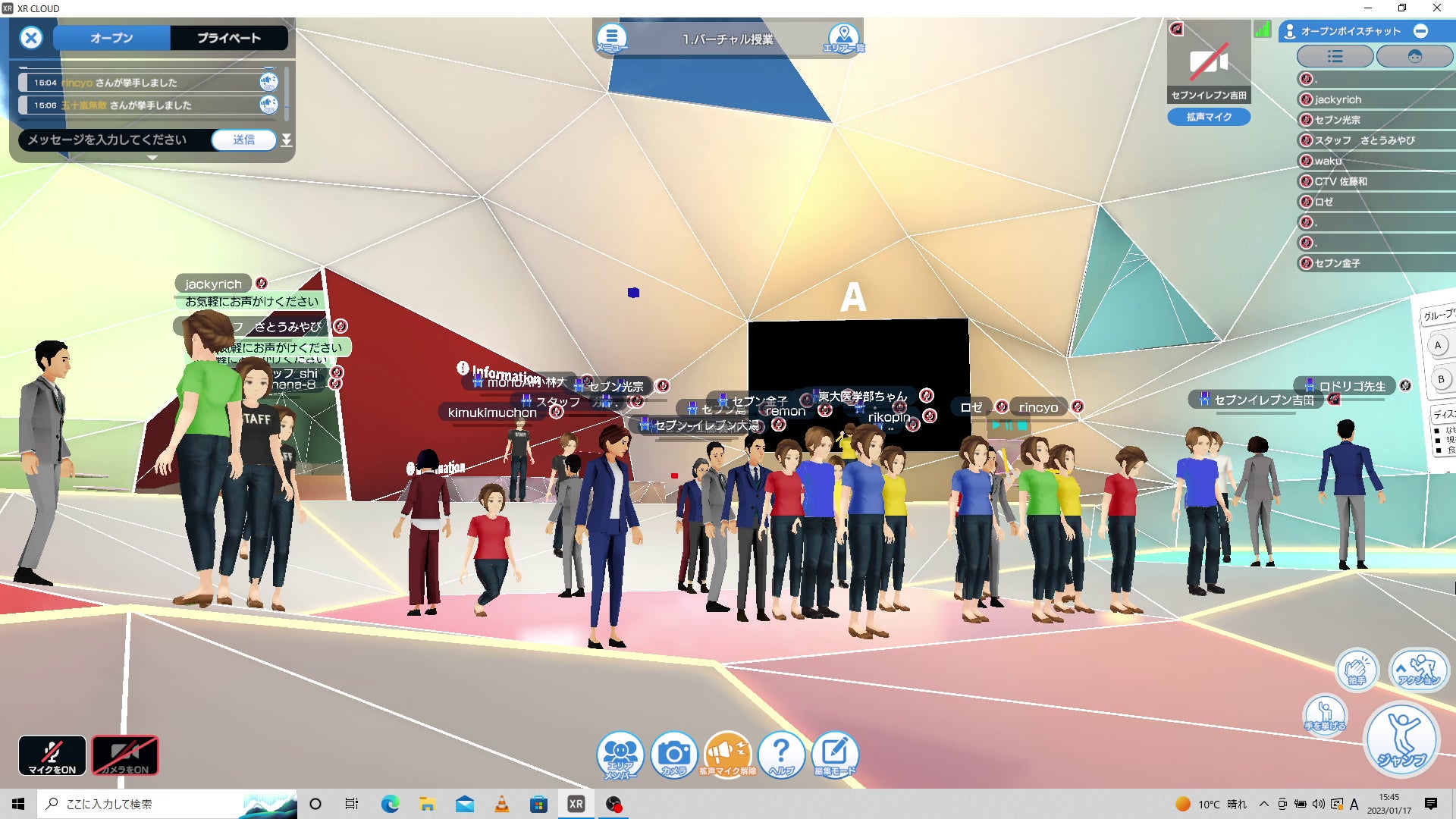 メタバース空間内では全員アバターとなり、顔を出さない、本名を明かす必要がないため、普段接する機会がない社会人と話しをする際の緊張や恥ずかしさを軽減することができます。メタバースが持つこの特性を活かし、企業が聞きたい生徒の「本音」収集を図る企画を授業内に取り入れ、セブン-イレブンに対する意識調査を企図とした〇×クイズやインタビューを行いました。これらの企画を活用することを通じて、企業のマーケティング活動等に資する「本音」情報収集の実現に向けた取り組みを引き続き進めて参ります。