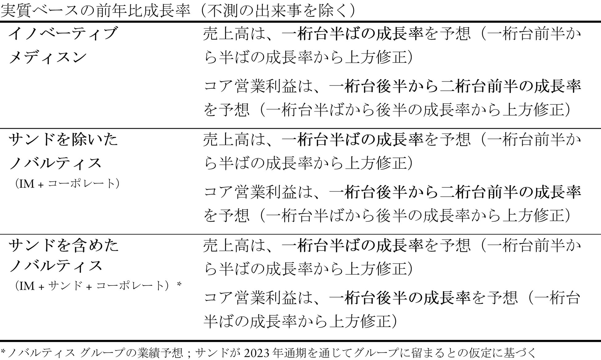 ノバルティス グループのコア営業利益は、一桁台後半の成長率を予想(一桁台半ばの成長率から上方修正)