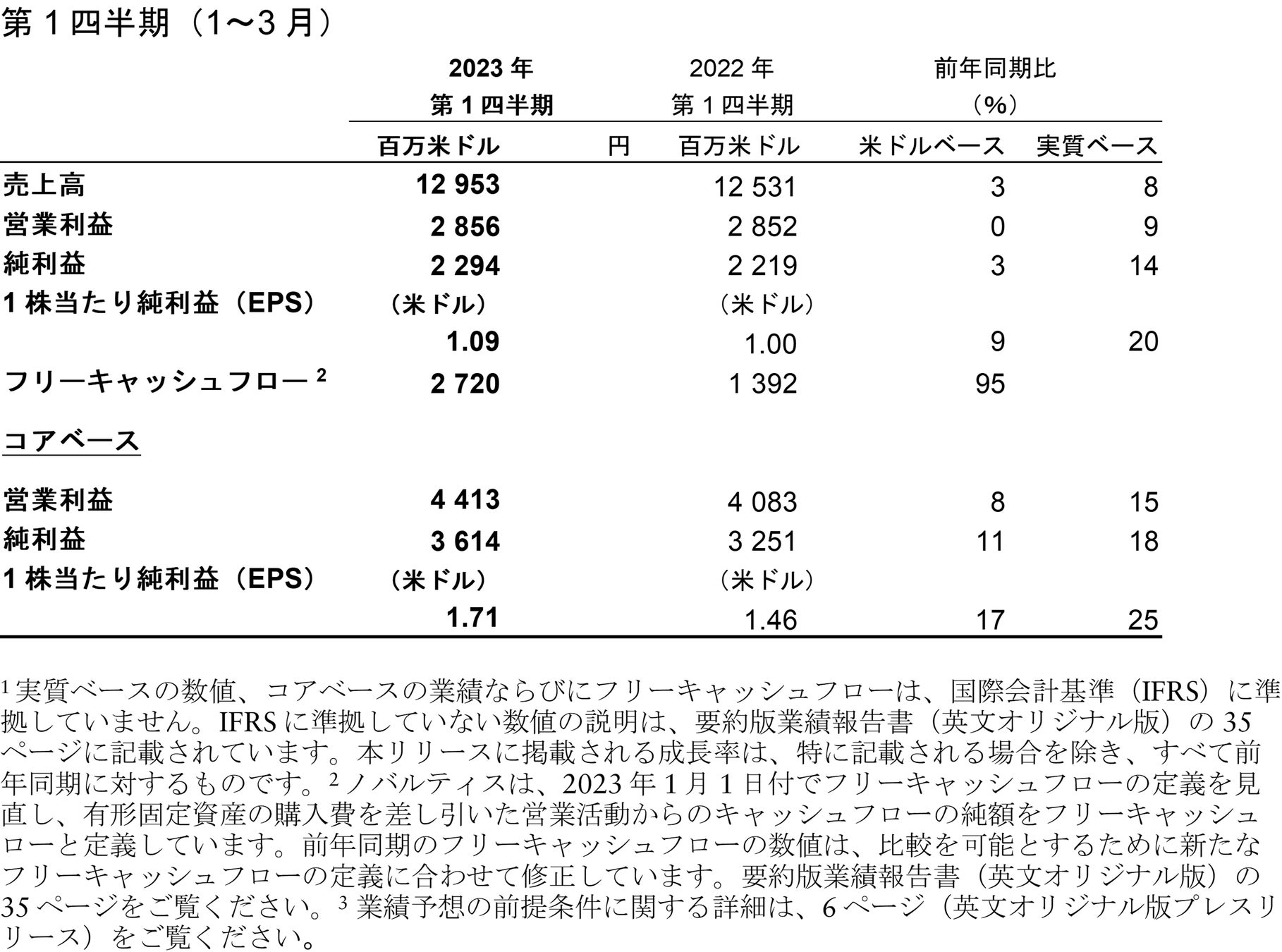 - ノバルティス業績2023年第1四半期