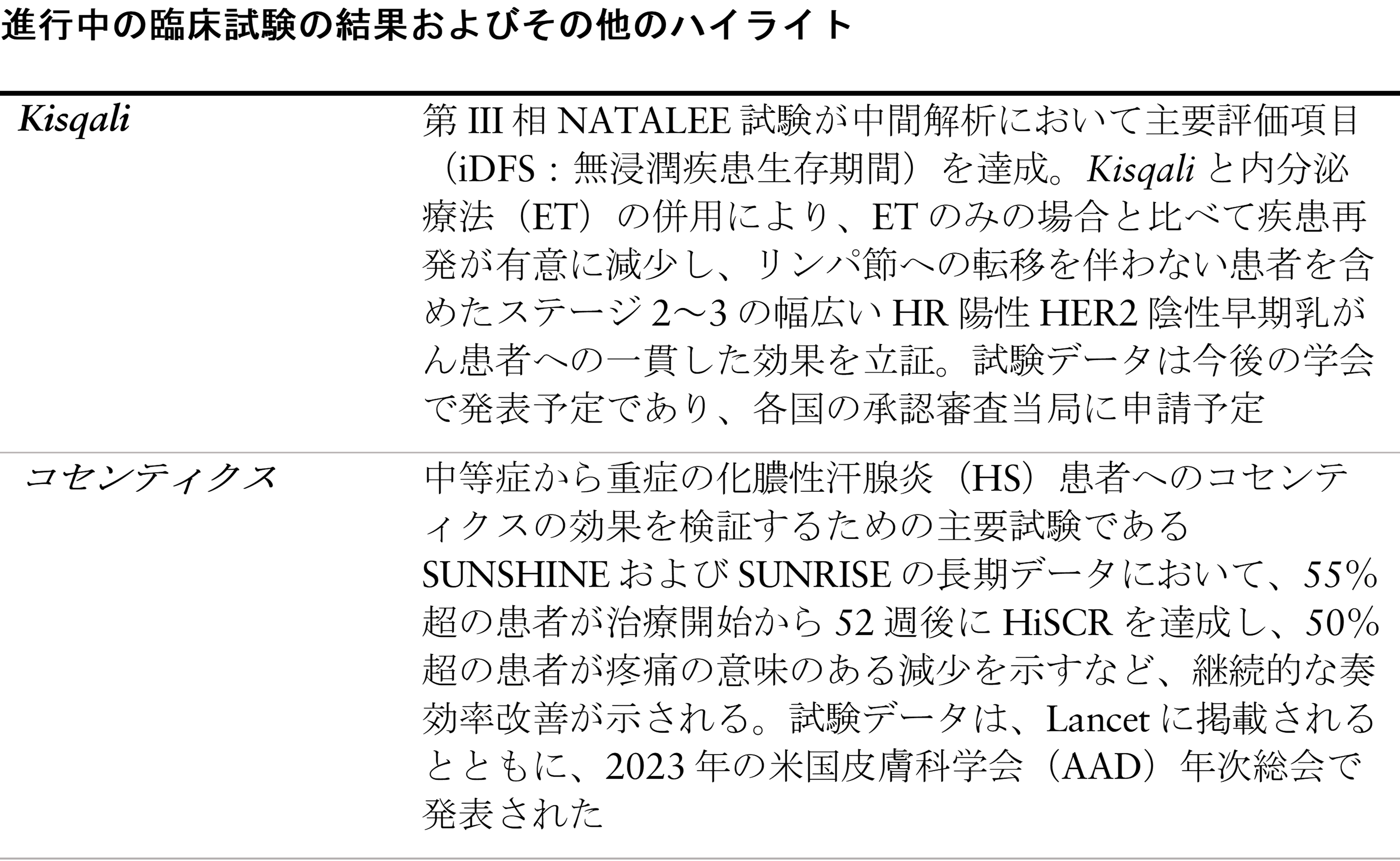 Kisqali – 第Ⅲ相NATALEE試験の中間解析において、乳がん患者の術後補助療法に関する主要評価項目(iDFS:無浸潤疾患生存期間)を達成