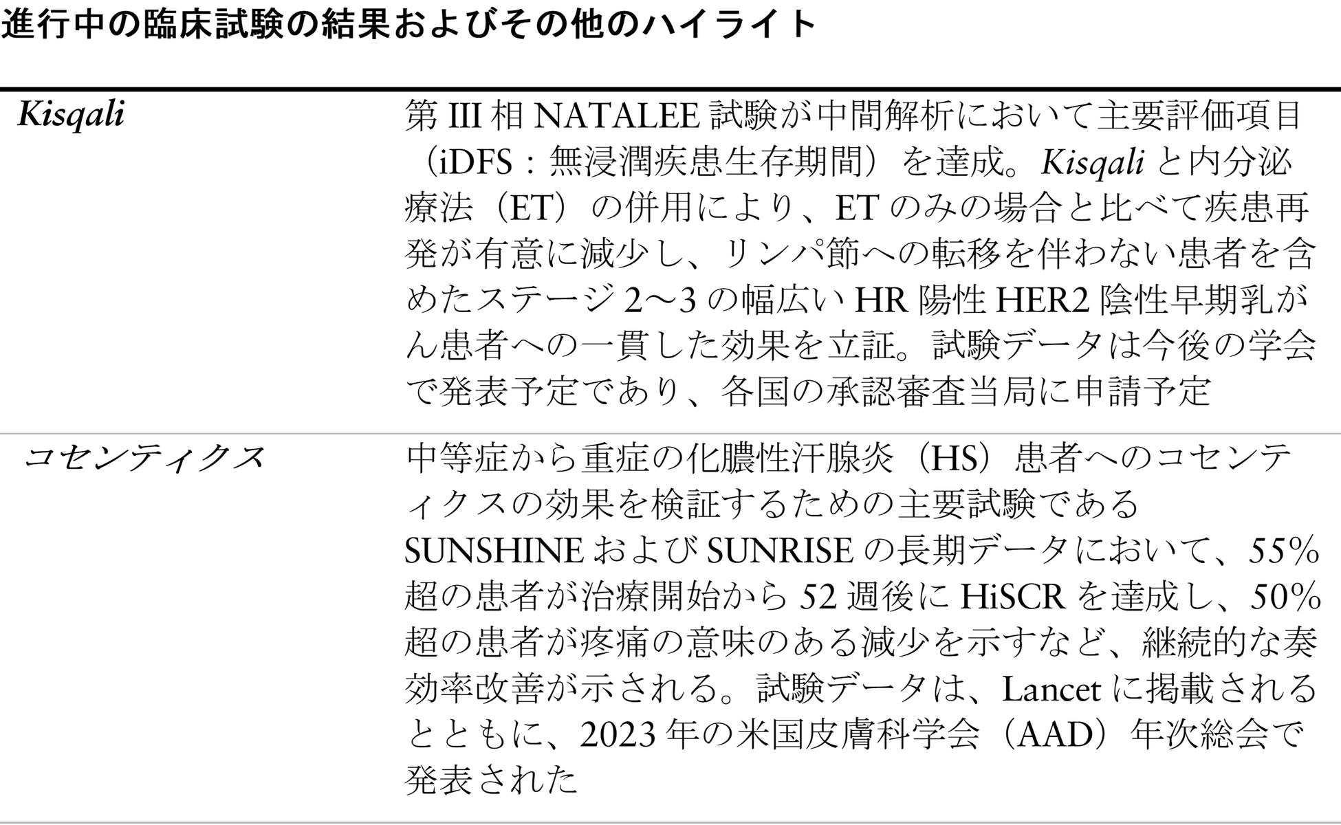 コセンティクス - 中等症から重症の化膿性汗腺炎(HS)適応に関する主要試験において、治療開始から52週間の肯定的な結果が得られる