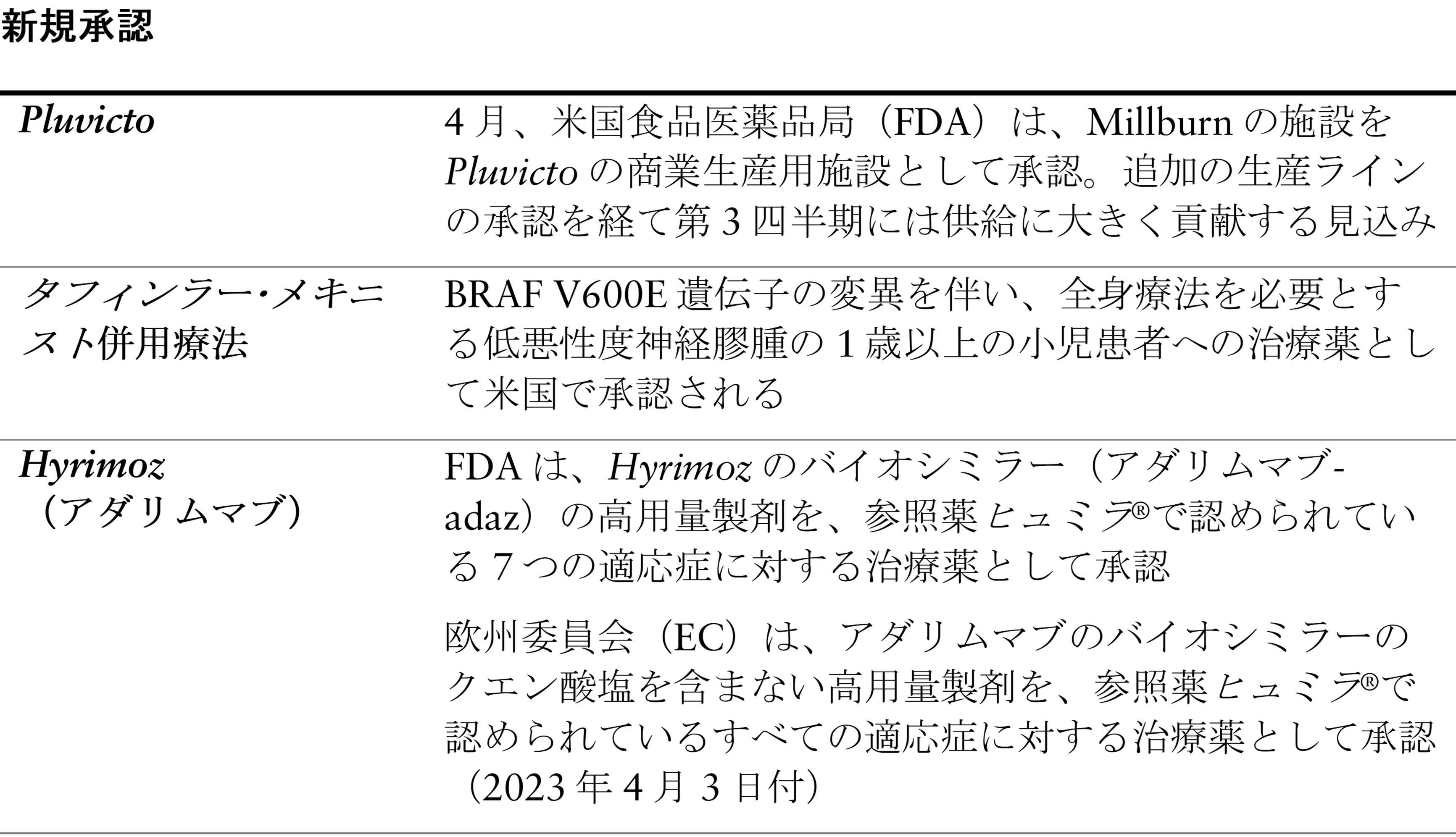 研究開発関連のアップデート ― 第1四半期の主な進捗
