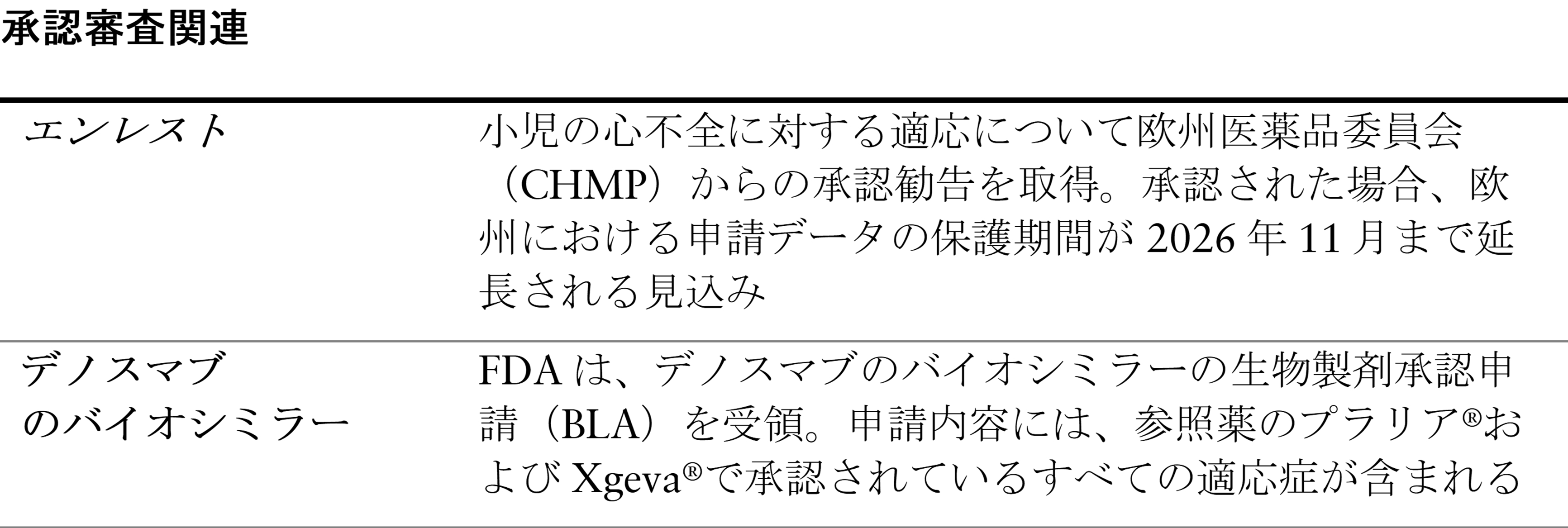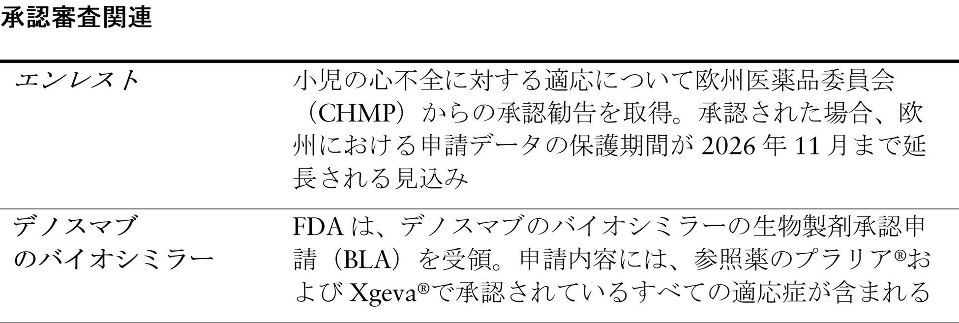 エンレスト - 小児の心不全患者に対する適応に関して欧州医薬品委員会(CHMP)から承認勧告を得る;承認された場合、申請データ保護期間(RDP)が2026年11月まで延長される