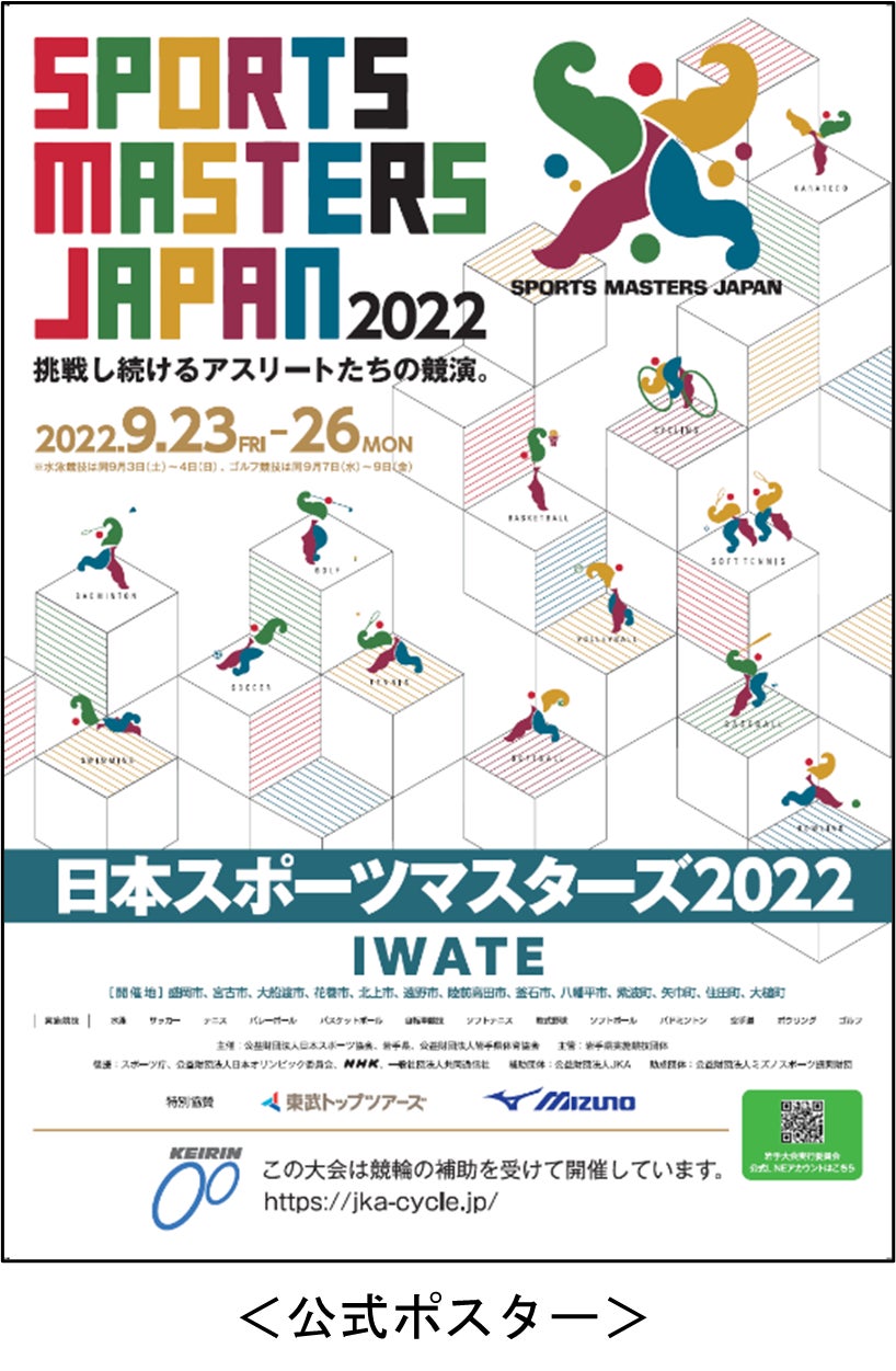 スポーツを「する」「みる」「ささえる」ための環境づくりを行うJSPO(正式名称:公益財団法人日本スポーツ協会 東京都新宿区/会長 伊藤雅俊)は、原則35歳以上のマスターズ世代を対象とした国内唯一の総合スポーツ大会「日本スポーツマスターズ2022岩手大会」を、9月22日(一部競技を除く)から、岩手県内9市4町25会場にて開催します。