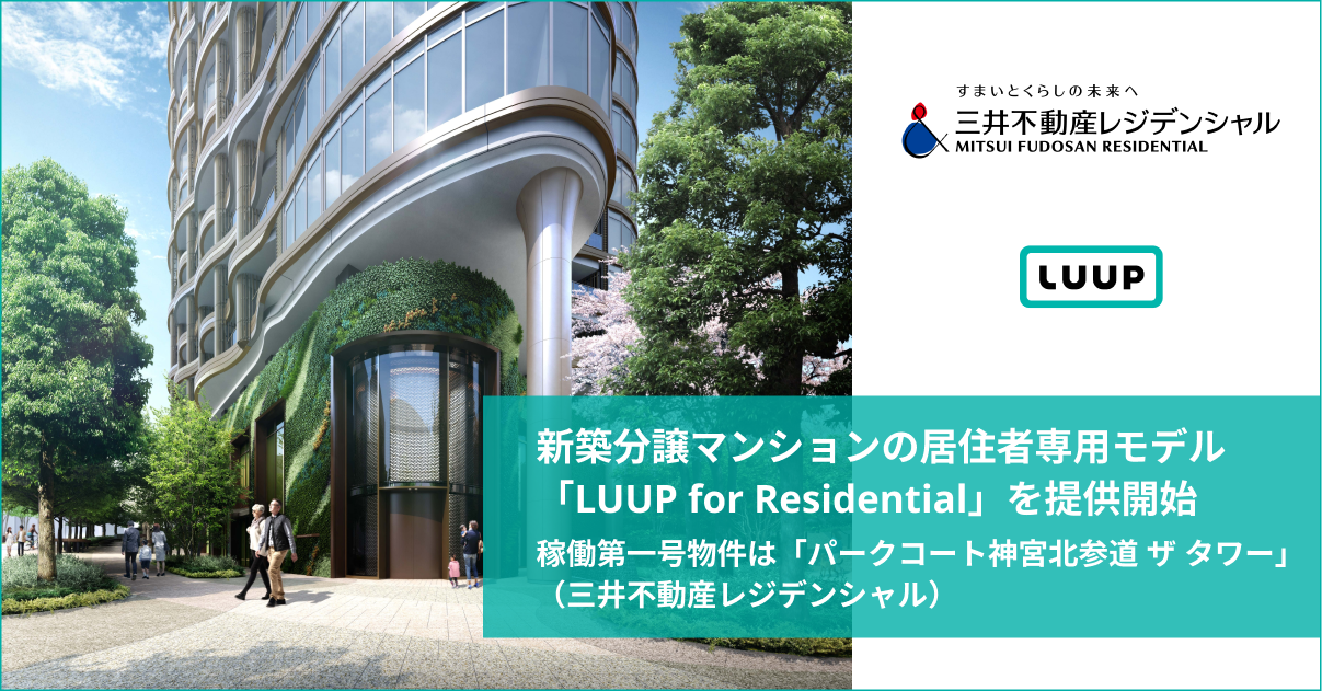 新築分譲マンションの居住者専用モデル「LUUP for Residential」を提供開始、稼働第一号物件は「パークコート神宮北参道 ザ タワー」(三井不動産レジデンシャル)