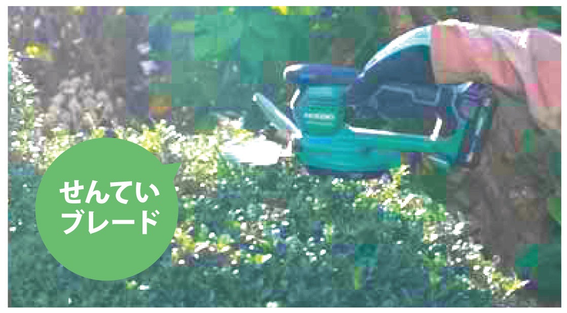 別売の「せんていブレード」に交換すれば低木のせん定作業が可能です。