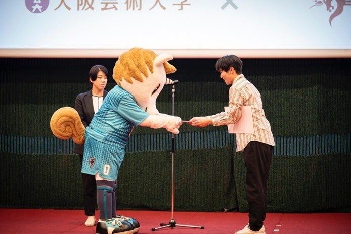最終選考では、クボタスピアーズ大阪の中野 加奈子ゼネラルマネージャーらによる審査を経て、5人組ユニット「6ix Soldier」(久保守 充さん・志田 百穂さん・戸高 匠大さん・原見 咲那さん・中辻 心粋さん)の作品がグランプリ、同学の大塚 理功さん、藤野 圭さんの作品が準グランプリを受賞しました。さらに、「6ix Soldier」は学生作品の枠を超えた商業レベルのクオリティを実現するため、メジャーレーベル「GIZA studio」の協力を得て、プロのスタジオで最終ミックス・マスタリングを実施しました。学生たちはプロのエンジニアと共に音作りを行う貴重な経験を経て、真のエンターテインメント作品としての公式チームソング「Color Your Future!~繋がる想い~」を完成させました。