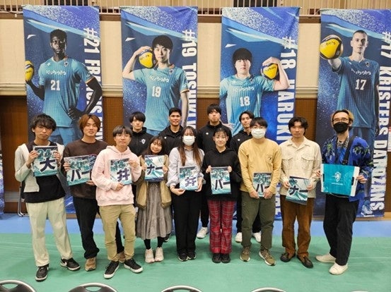 2025年12月7日(日)、Asueアリーナ大阪で行われたV.LEAGUE MEN WEST公式戦にて、本学とプロバレーボールチーム「クボタスピアーズ大阪」との産学連携プロジェクトにより制作した公式チームソング「Color Your Future!~繋がる想い~」を初披露しました。