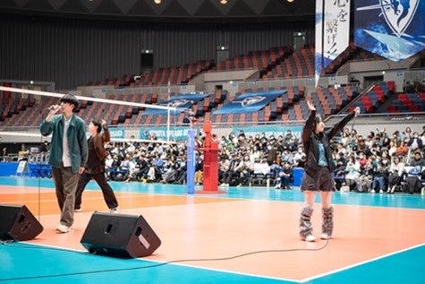 試合はセットカウント1-1と接戦を繰り広げる中、ハーフタイムに学生ユニット「6ix Soldier」が登場。1,000名を超える観客の手拍子に包まれたコート中央で、ヴォーカルの戸高匠大さんがエネルギッシュな歌声を響かせると、会場のボルテージは一気に最高潮へ達しました。この力強いパフォーマンスがチームに勢いを与え、クボタスピアーズ大阪は続く第3・第4セットを連取。見事3-1で勝利を収め、学生たちの歌声はまさにチームを力づける「勝利の歌」として華々しいアリーナデビューを飾りました。