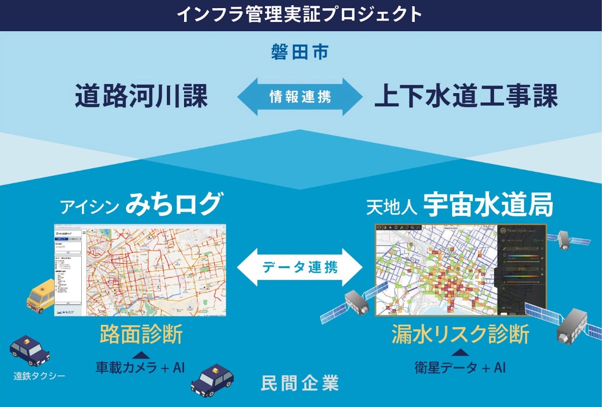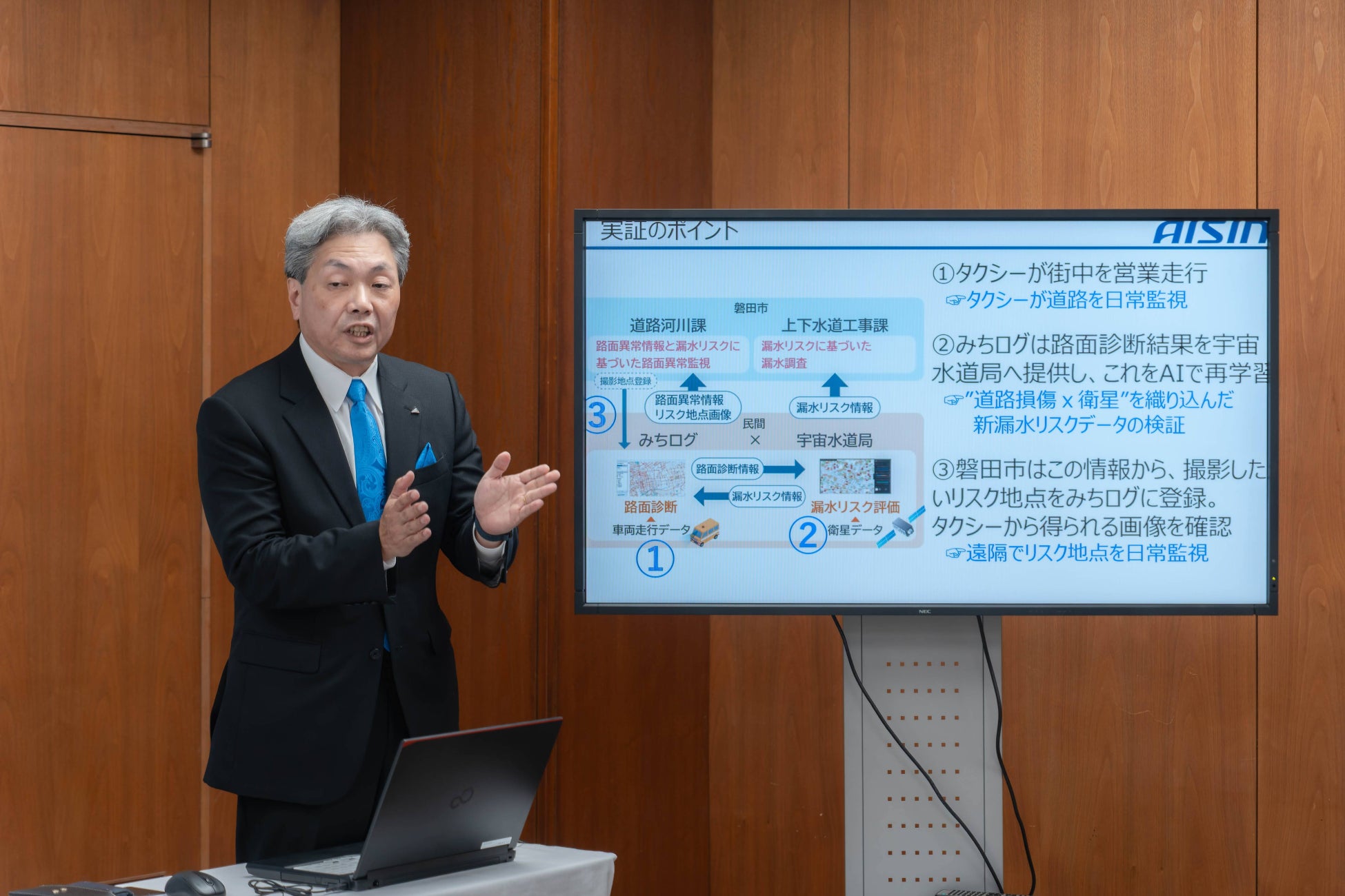 JAXA認定の宇宙ベンチャー 株式会社天地人(東京都中央区 代表取締役 櫻庭康人)と、株式会社アイシン、静岡県磐田市は、「インフラ管理の高度化に向けた実証実験」に関して、2025年8月19日(火)に磐田市役所にて基本合意書締結式を開催いたしました。本実証実験は、衛星データで漏水リスクを診断する「宇宙水道局」と車載カメラ+AIで路面異常を検知する「みちログ」を連携させ、日本初の道路・水道管理連携による新たなインフラDXの実現を目指します。