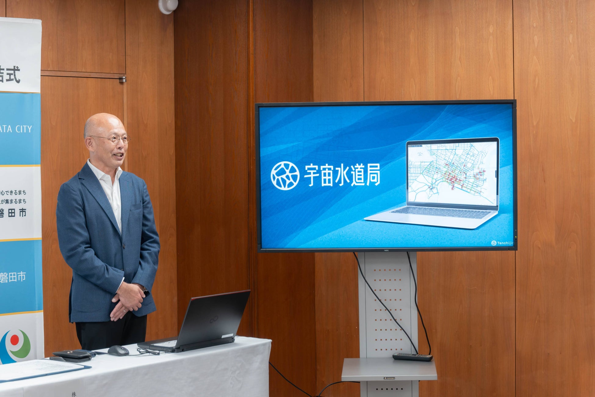 「天地人は、衛星データを活用して社会課題の解決に貢献することを使命としています。磐田市様には2年前から先駆的に『宇宙水道局』をご導入いただき、現在は3年目に入っています。市内全域を漏水リスクに応じてカラーリングし、高リスク箇所に資源を重点配分する運用により、音聴調査の効率化が確実に進みました。