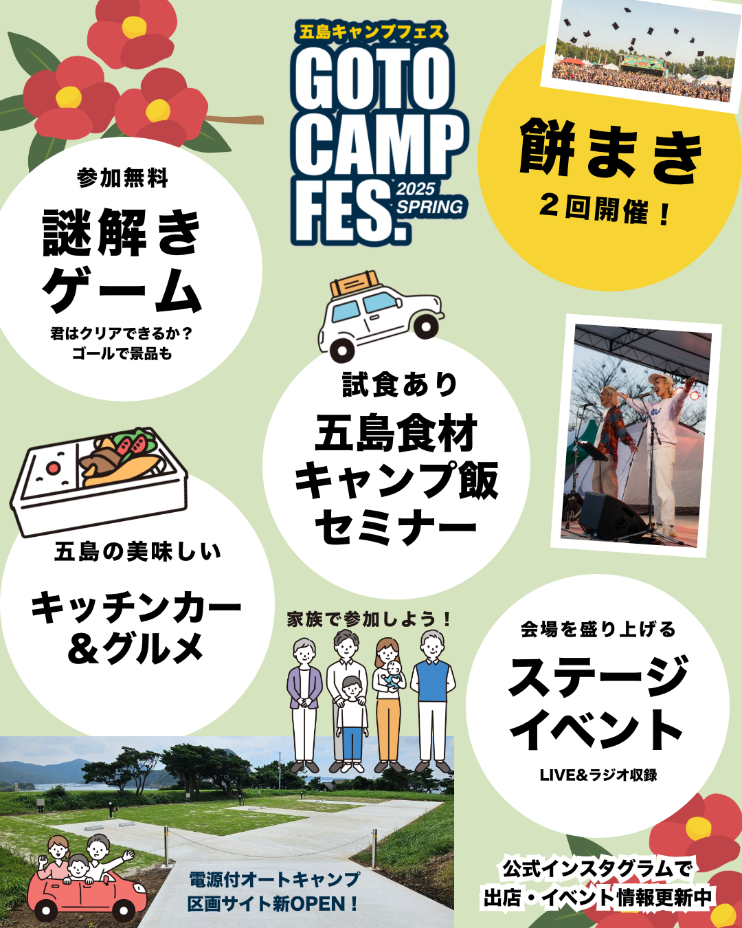 日本初?!餅まきならぬ、マシュマロまきも!長崎県五島市にて、GOTO CAMP FES. 2025 SPRINGを今年も開催!魚津ヶ崎公園キャンプ場にて五島の食と自然を楽しむイベント