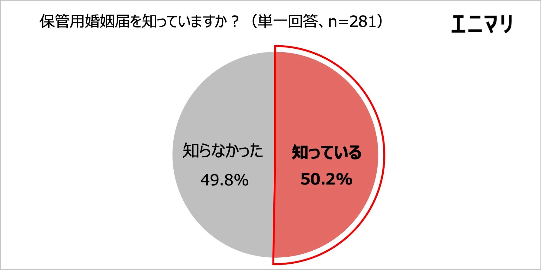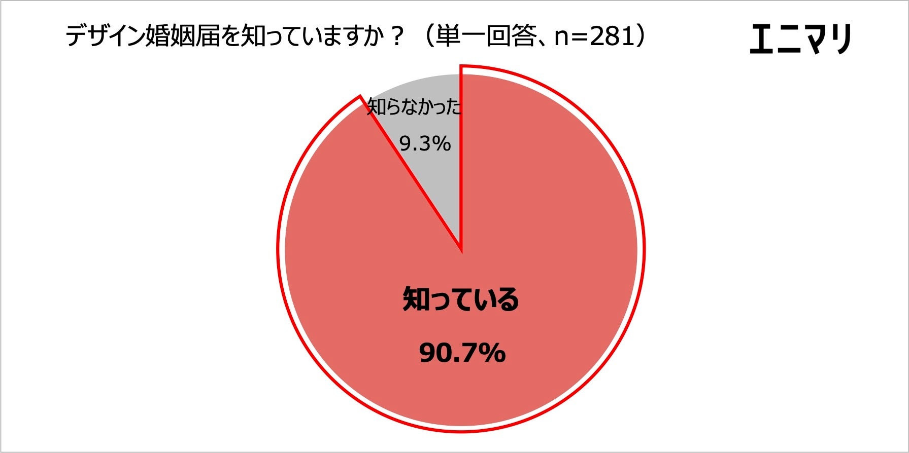 エニマリが運営するウェディング総合情報サイト『みんなのウェディング』において、挙式を終えた「卒花嫁」さんやこれから挙式を予定している「プレ花嫁」さんを対象に婚姻届に関するアンケートを実施したところ、婚姻届にデザインが施されている 「デザイン婚姻届」 を「知っている」と回答した方が9割超となりました。「ふたりの大切なイベントなので、こだわりたい」「記念に残したい」という理由で利用する方が多く、今後はデザイン性の高い「保管用婚姻届」のニーズも拡大することが期待されます。