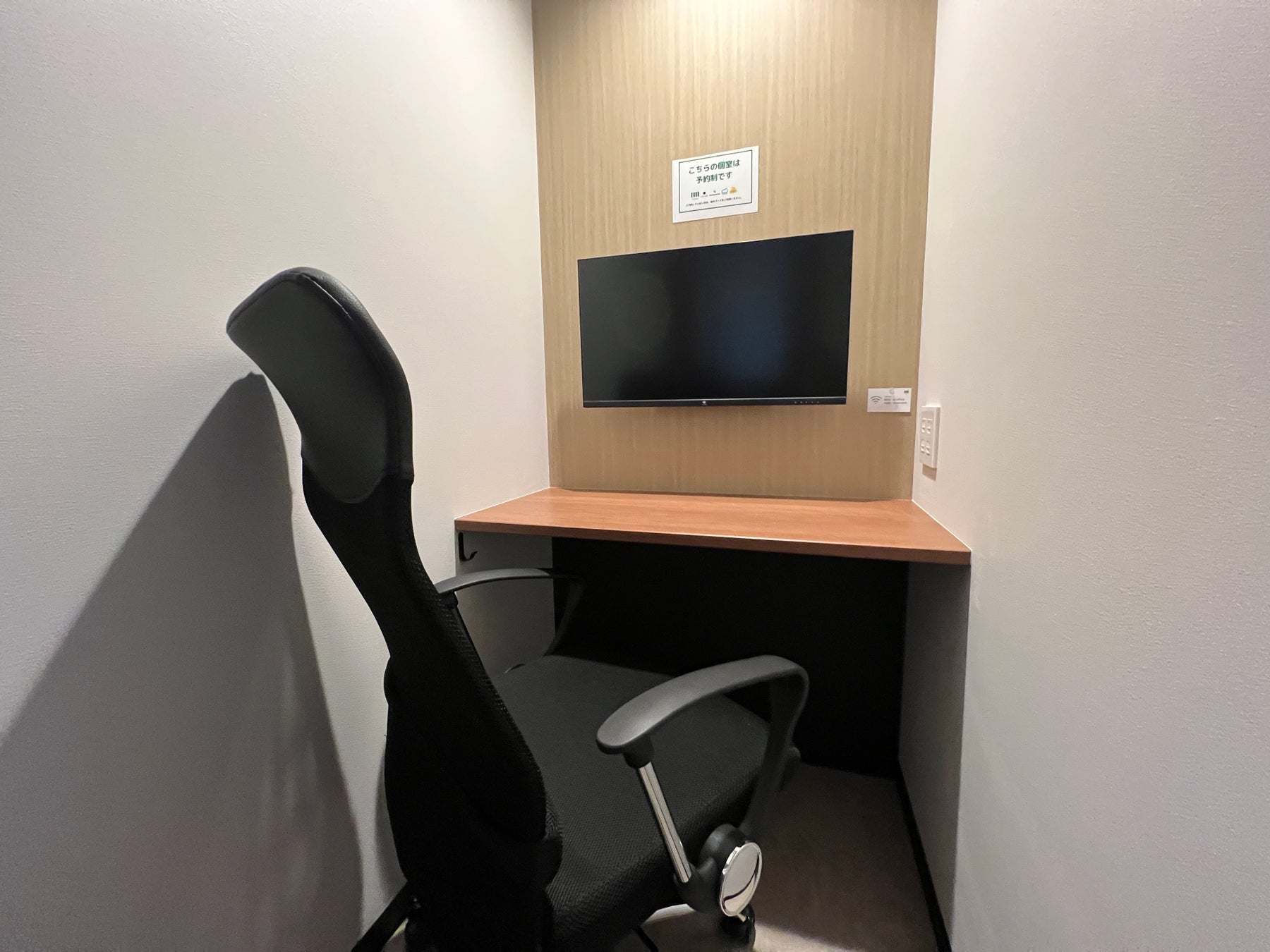 個室は机幅が広く、広々した空間で長時間利用しても快適にお過ごしいただけます。また、全室モニター完備のため、いつも以上に集中して仕事したいときに最適です。