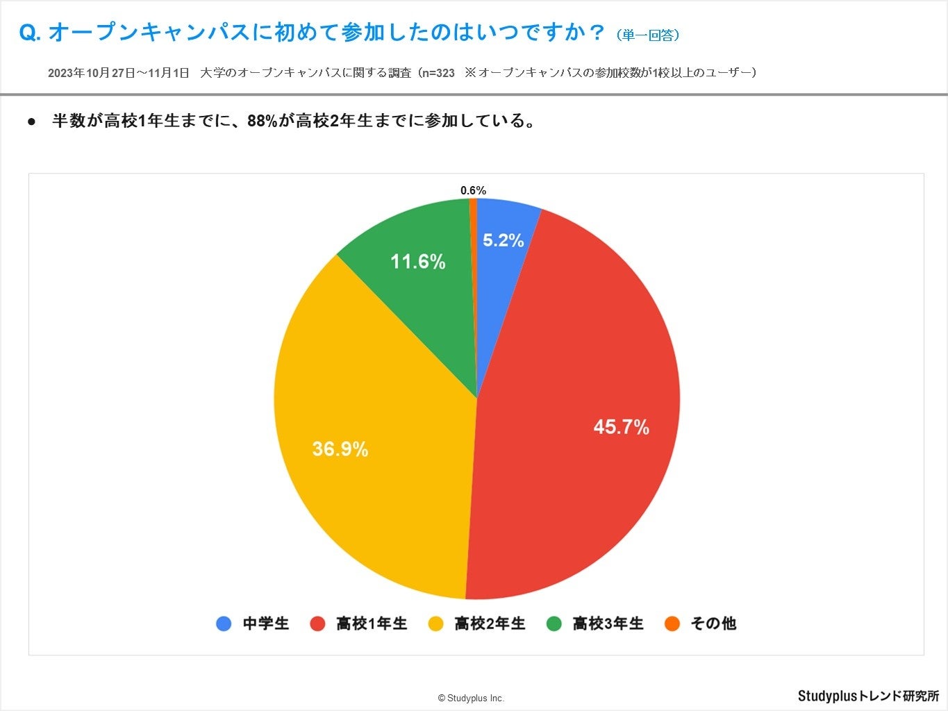 【調査項目②】オープンキャンパスに初めて参加したのはいつですか?(単一回答) ※オープンキャンパスへの参加校数が1校以上のユーザー向け調査