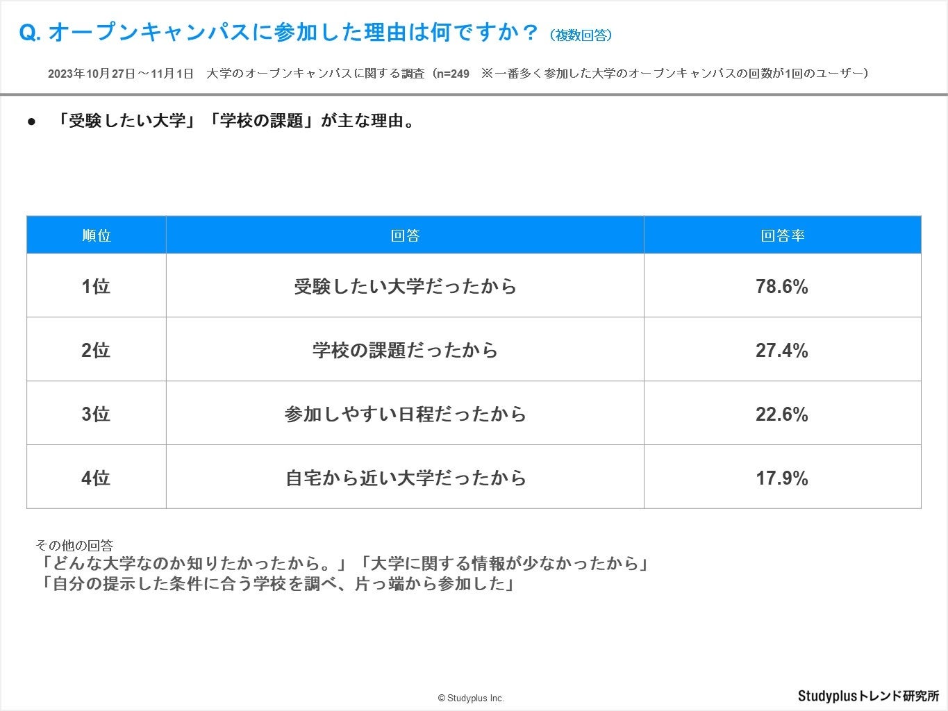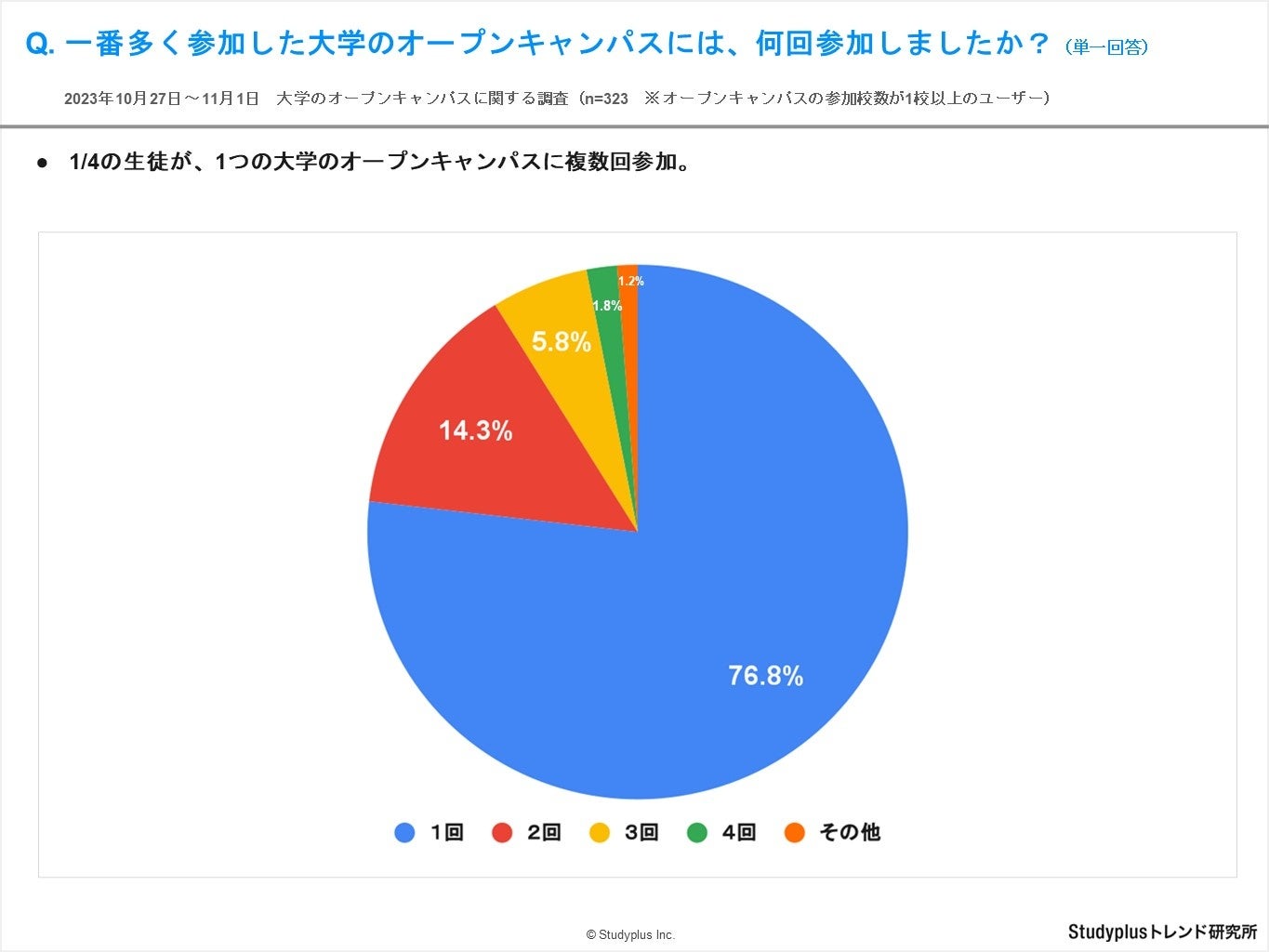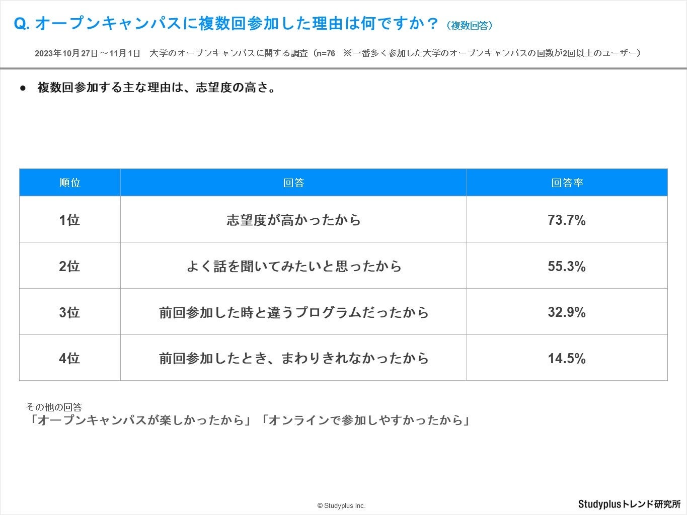 - 調査方法 : 学習管理アプリ「Studyplus」上でアンケート回答を依頼し、オンラインで回答を回収。