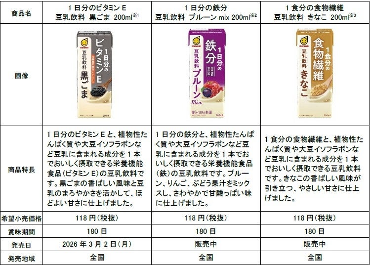 マルサンアイ株式会社(本社:愛知県岡崎市、代表取締役社長:稲垣 宏之)は、不足しがちな栄養素を豆乳で手軽に摂取できる栄養機能食品(ビタミンE)「1日分のビタミンE 豆乳飲料 黒ごま 200ml」を2026年3月2日(月)より全国で発売します。