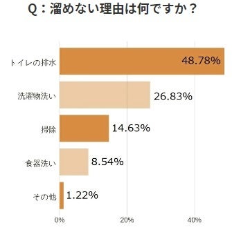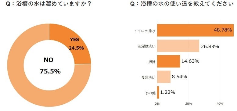 実際現在でも24%のご家庭では風呂水を溜めているという結果に。その用途としてはトイレの排水がトップ、そして洗濯物洗い→掃除→食器洗いと続きます。