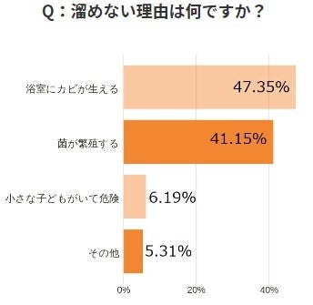 その理由としては、カビの発生・菌が繁殖ということで、“衛生観念上”がトップに来ました。汚れた水は、手に傷などがあればうっかり触れただけで感染する可能性もありますから、カビや菌の発生というのは軽視できない問題です。
