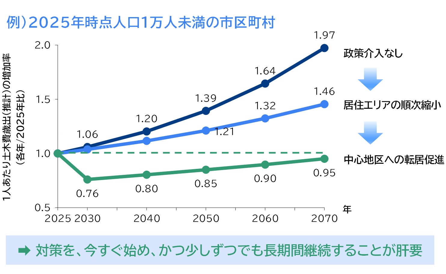 人口あたり土木費が50年後に倍増する自治体も。小規模自治体は積極的なコンパクト化が必須