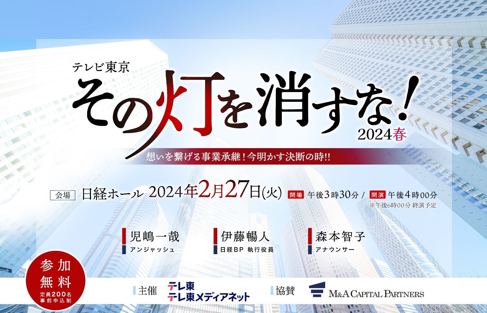 主催:株式会社テレビ東京・株式会社テレビ東京メディアネット 協賛:M&Aキャピタルパートナーズ株式会社 |