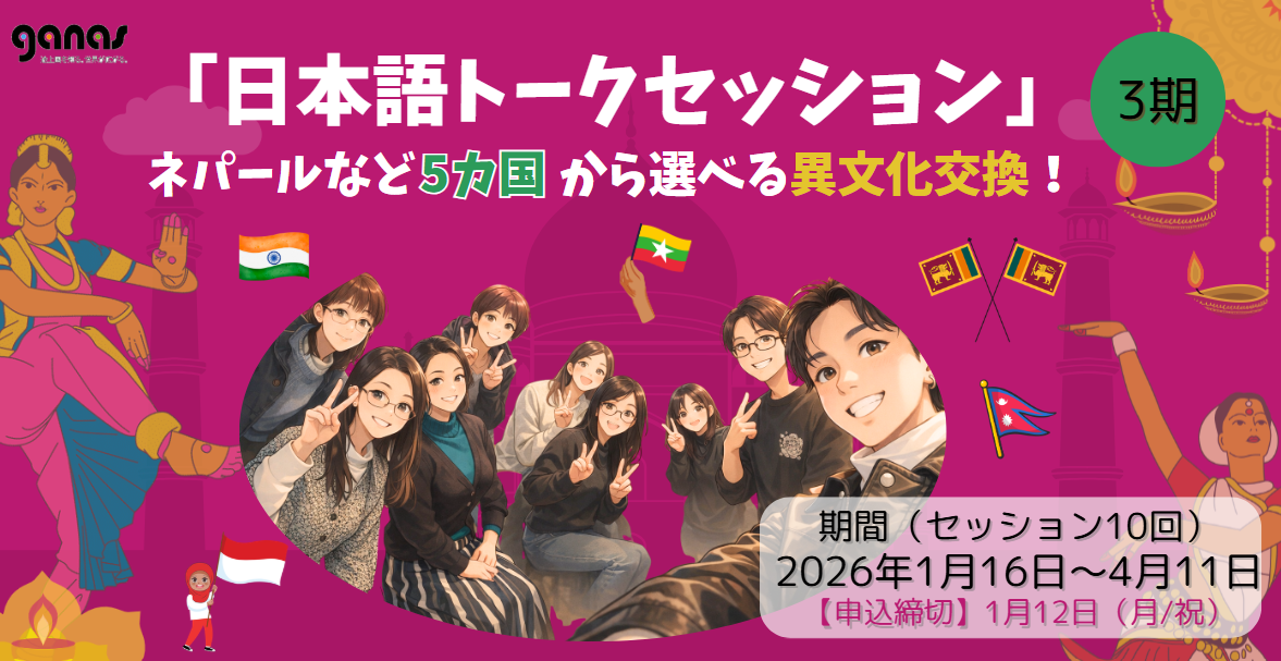 【締切1/12】「日本語トークセッション」(3期)ネパールなど5カ国から選べる異文化交換!
