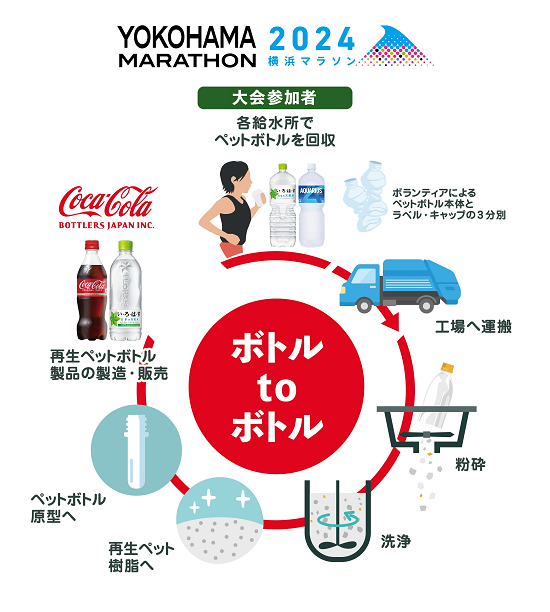 コカ・コーラ ボトラーズジャパン、「横浜マラソン2024」で「ボトルtoボトル」に向けた取り組みを実施