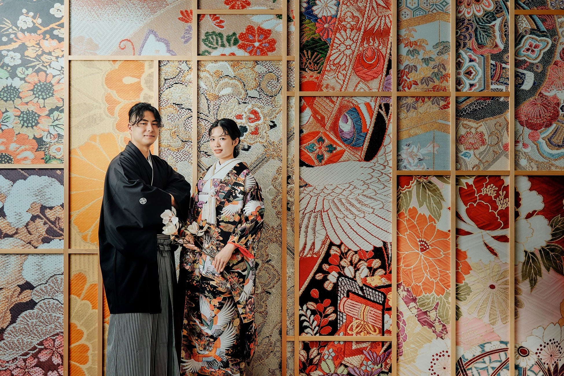 伝統的な和とモダンが融合した豪華絢爛な空間 。気品溢れる美しいアートと花々が和装を艶やかに彩ります。