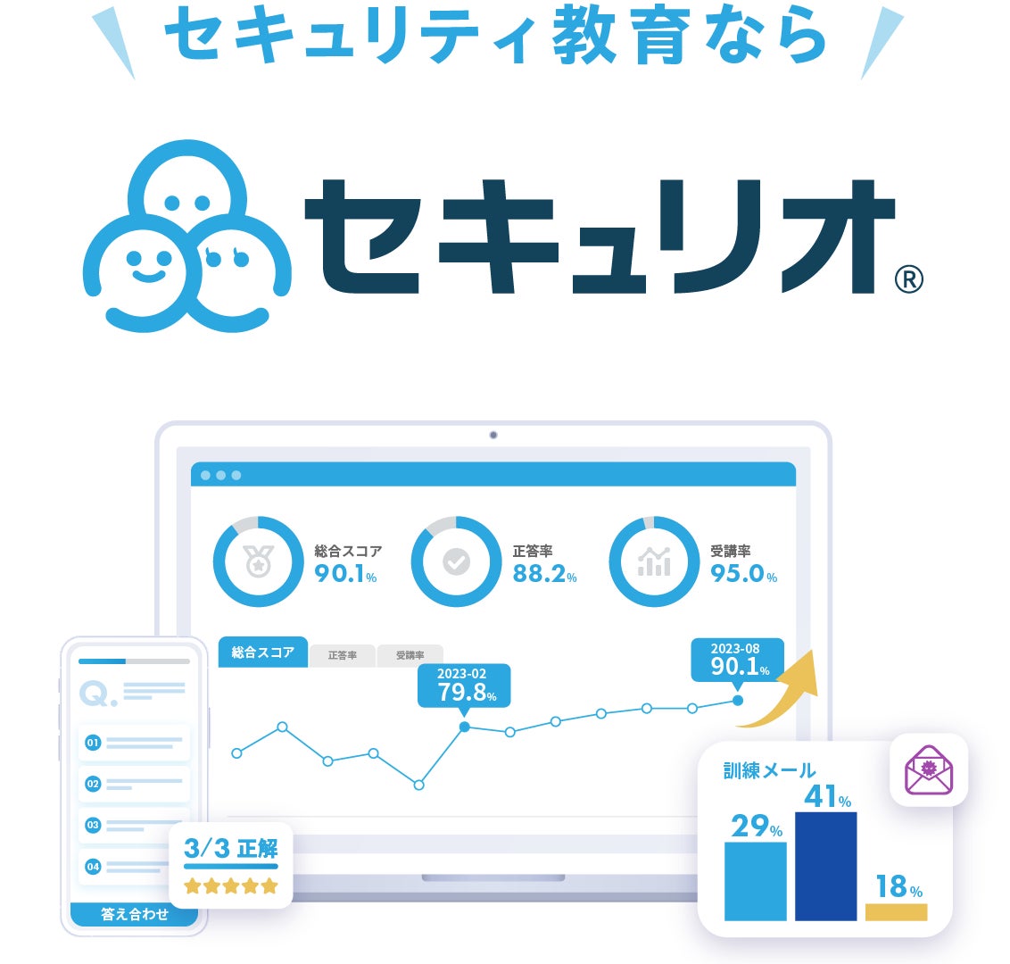 「セキュリオ」は、セキュリティ教育をだれでもかんたんに行うことができるクラウドサービスです。