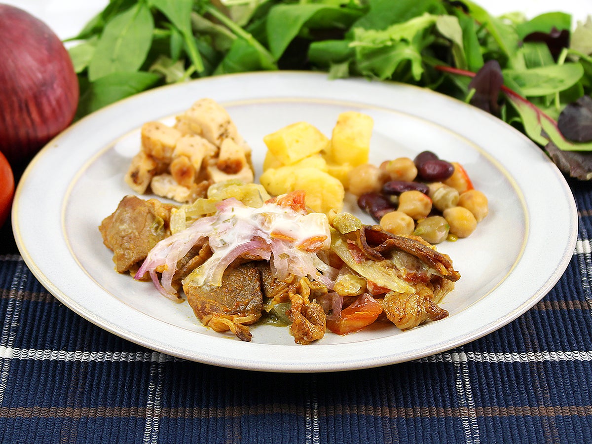 ケバブとは、中東とその周辺地域で食される、肉・魚・野菜などをローストして調理する料理の総称です。牛バラ肉をスパイシーなカレー風調味料で調理いたしました。レタス、玉葱、トマトとご一緒にお召し上がり下さい。隠し味にバターミルクドレッシングを添えております。軽いサラダとしてもお楽しみいただけるので、ナッシュバンズパンと非常に相性の良いプレートとなっております。