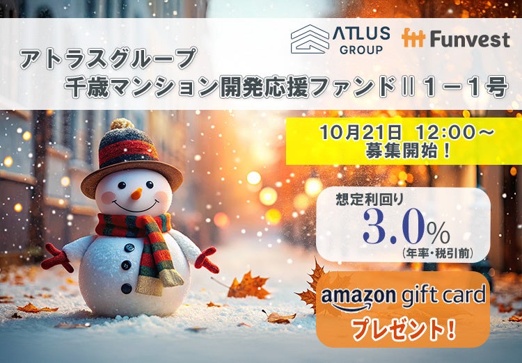 「未来をわかちあう投資」を提供する「Funvest(ファンベスト)」(以下、Funvest)は、「アトラスグループ 千歳マンション開発応援ファンドⅡ1-1号」(以下、本ファンド)の募集を10/21より開始しますので、お知らせいたします。