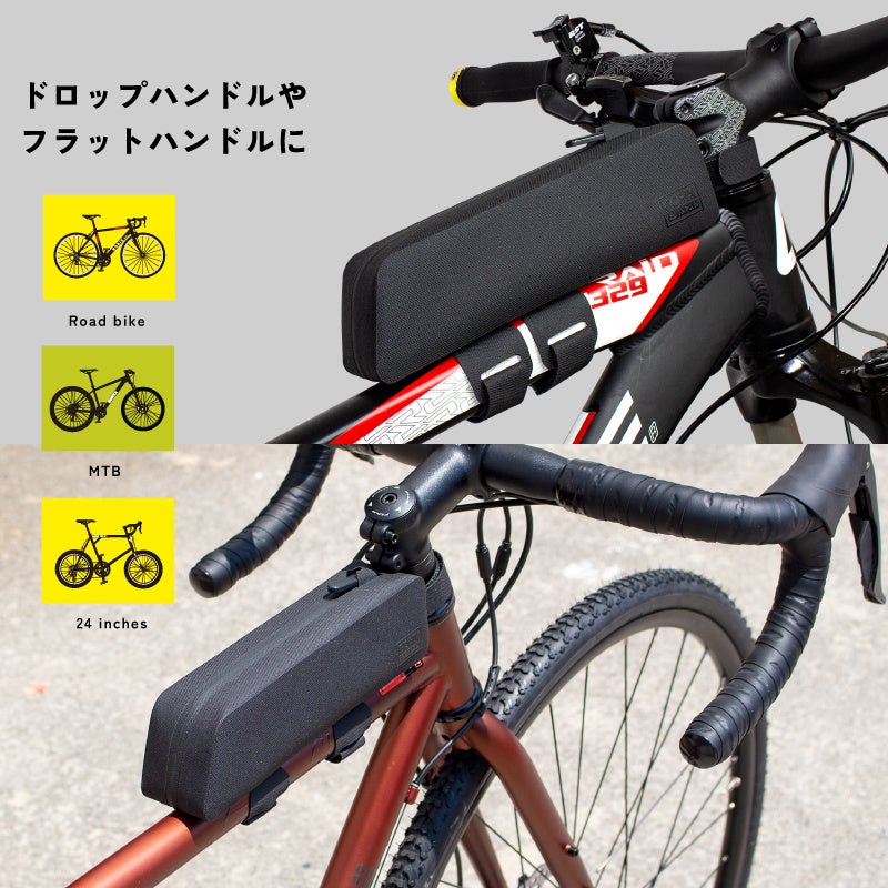 かっこよくシンプルなデザインのトップチューブバッグです。