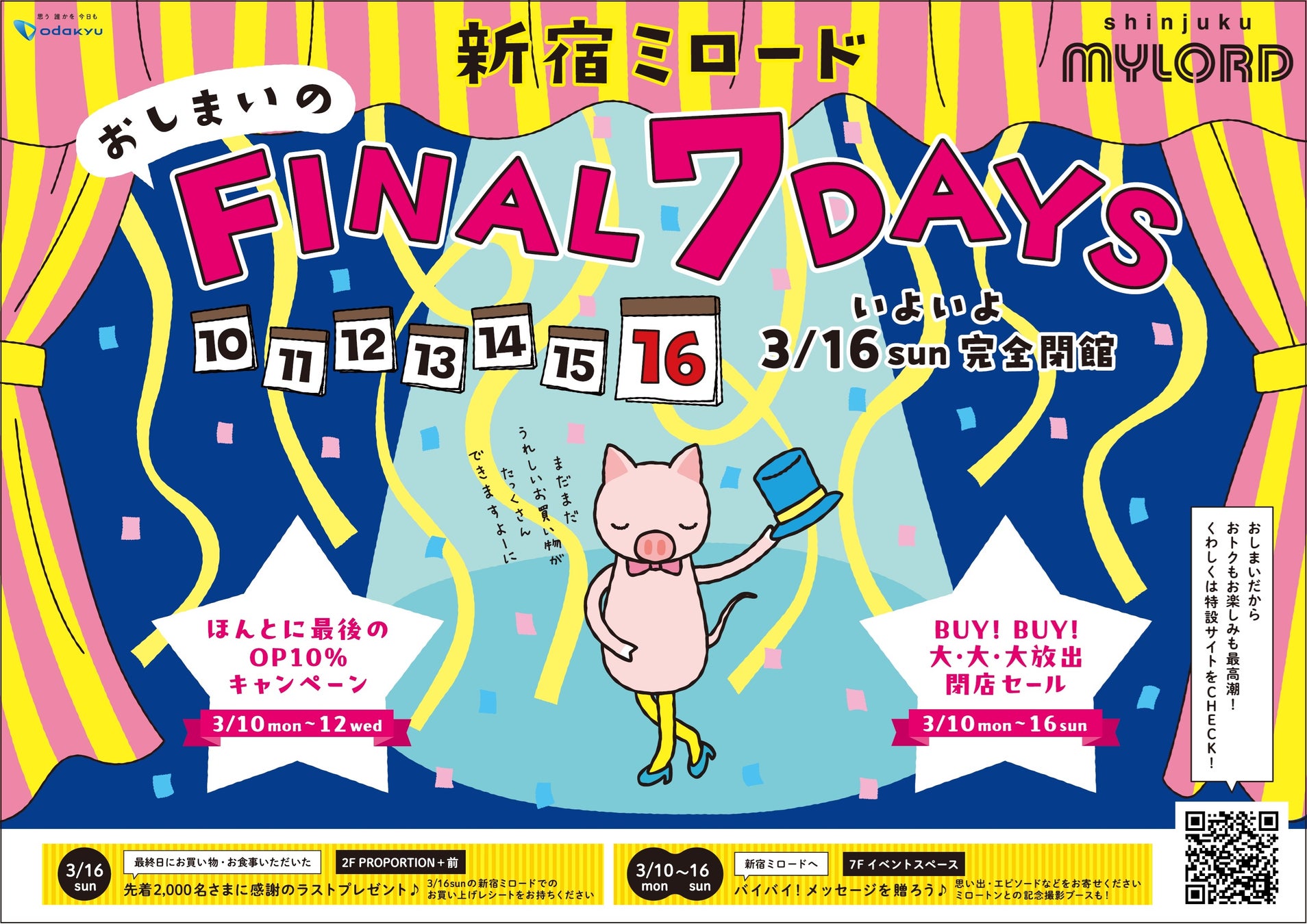 新宿ミロード閉館前最後の1週間である2025年3月10日(月)から3月16日(日)にて、最後のキャンペーン「おしまいのFINAL 7DAYS」を開催。