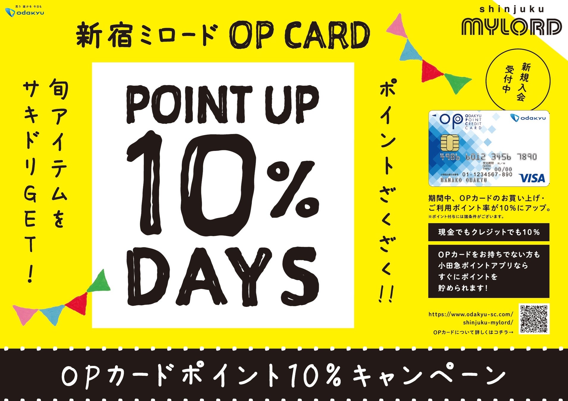 内容:新宿ミロードでの開催は今回が最後となるOPカードポイント10%キャンペーンを3日間限定で開催します。