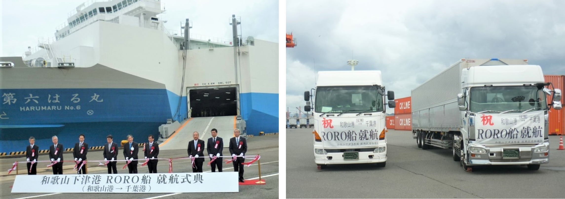積み荷の移動にクレーンが不要で、災害時の支援物資などの輸送に有効なRORO船※1の定期航路化を進める和歌山県と連携し、和歌山市近隣企業や運送会社と協力して2022年6月に試験輸送を実施した結果、2022年10月8日(土)から毎週土曜日の定期航路として就航が実現しました。