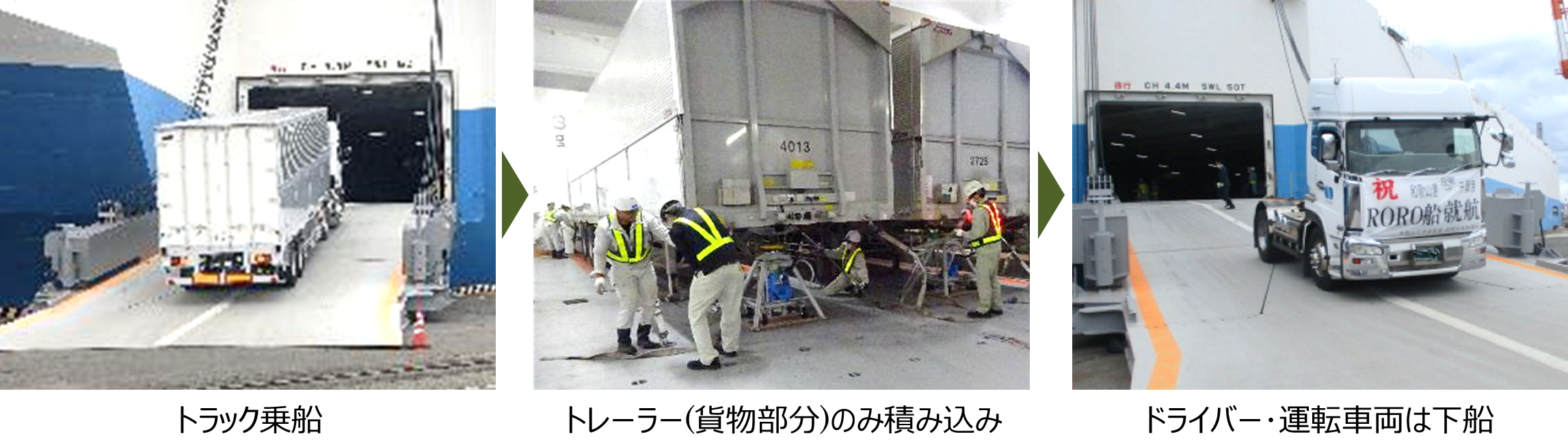 ※1RORO(Roll-on Roll-off)船: トラックの貨物を積載したトレーラー部分のみを輸送する船舶