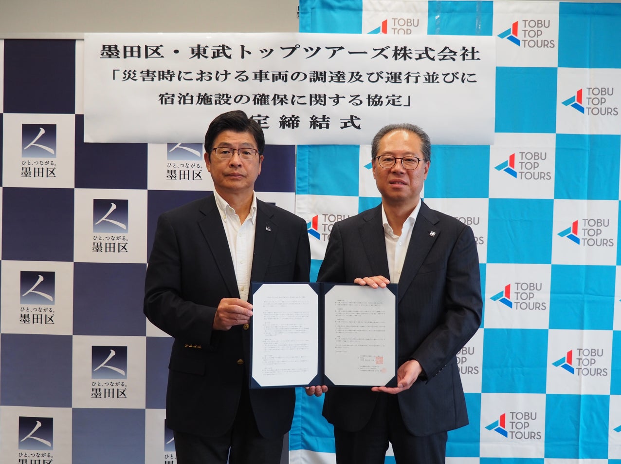 東武トップツアーズ、東京都墨田区と「災害時における車両の調達及び運行並びに宿泊施設の確保に関する協定」を締結