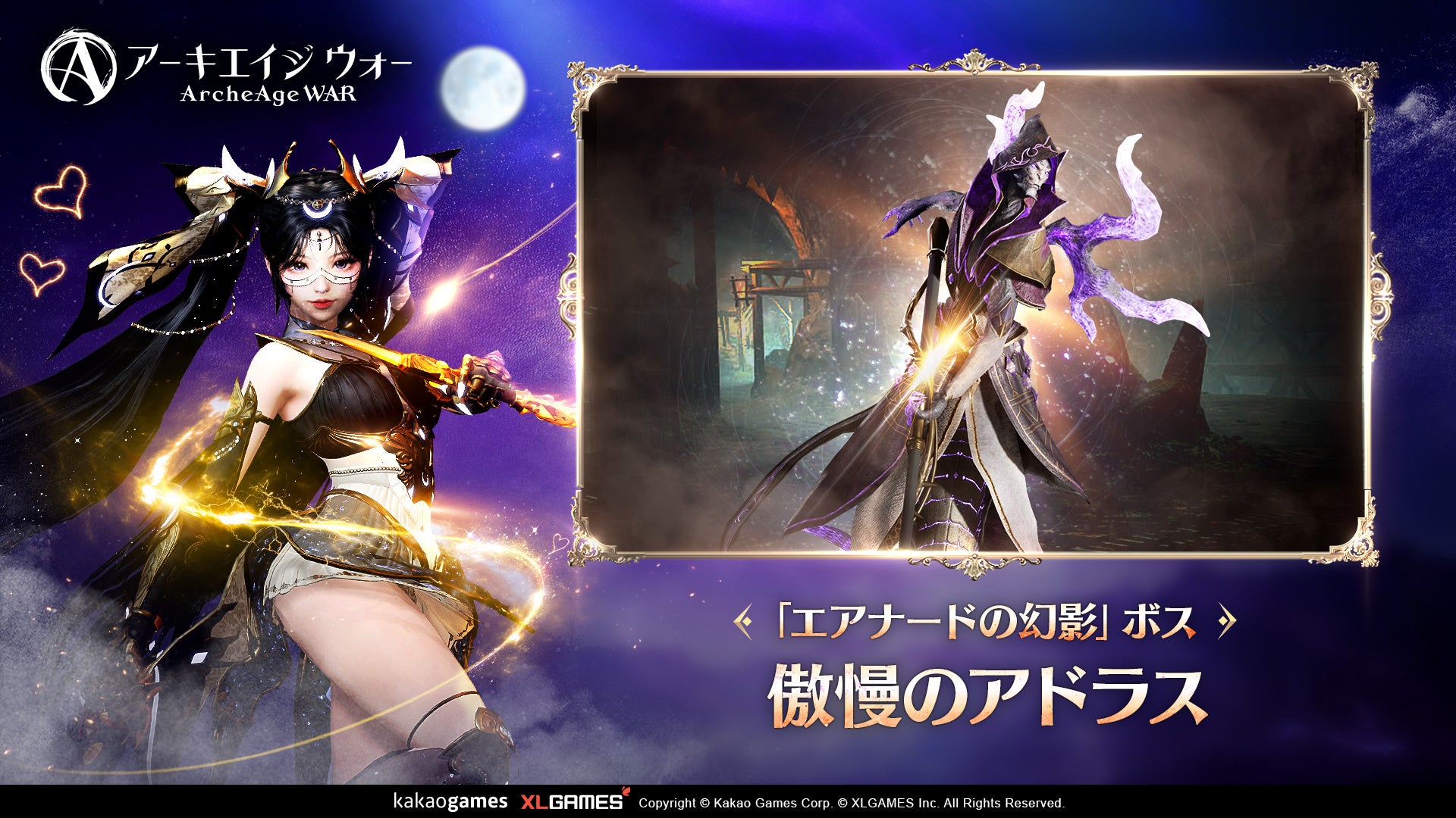 また、ダンジョンの最奥部には、新規ボスモンスター「傲慢のアドラス」が待ち構えている。多属性攻撃と状態異常を操る「傲慢のアドラス」は、広範囲にダメージを与える通常攻撃を繰り広げる。通常攻撃でも状態異常が付与されるため、致命的なダメージや状態異常に陥る危険がある。「傲慢のアドラス」を討伐して「エアナードの幻影」を攻略するには、より緻密な連携と戦略が必要になる。