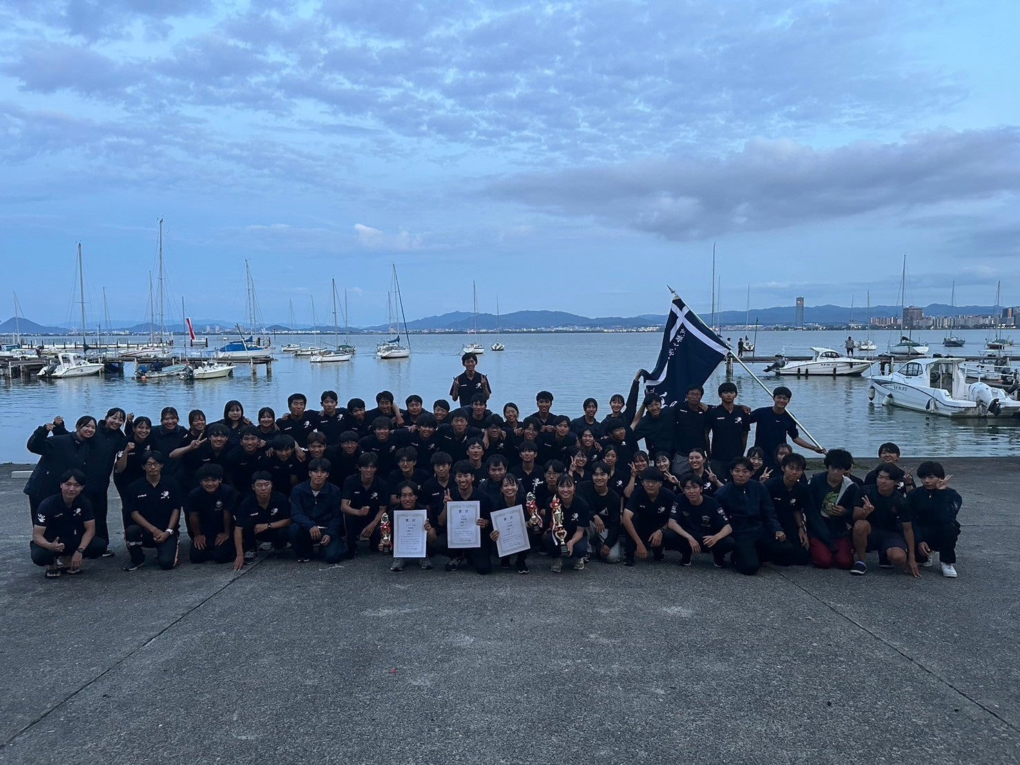 この度、ネクサスエージェント様とスポンサー契約を締結させていただきました、京都大学体育会ヨット部です。琵琶湖を主な拠点として活動しており、来年で創部90周年を迎えます。部員数は80人以上に及び、経験者が多い強豪私立に対して弊部は未経験者が9割を占めていますが、層の厚さやサポート力などの総合力を武器に、全日本インカレでは現在3年連続で総合入賞を達成しております。2019年にはスナイプ級優勝、2022年には総合3位を成し遂げ、本年度は江ノ島で行われる全日本インカレでの総合3位を目標に活動しております。