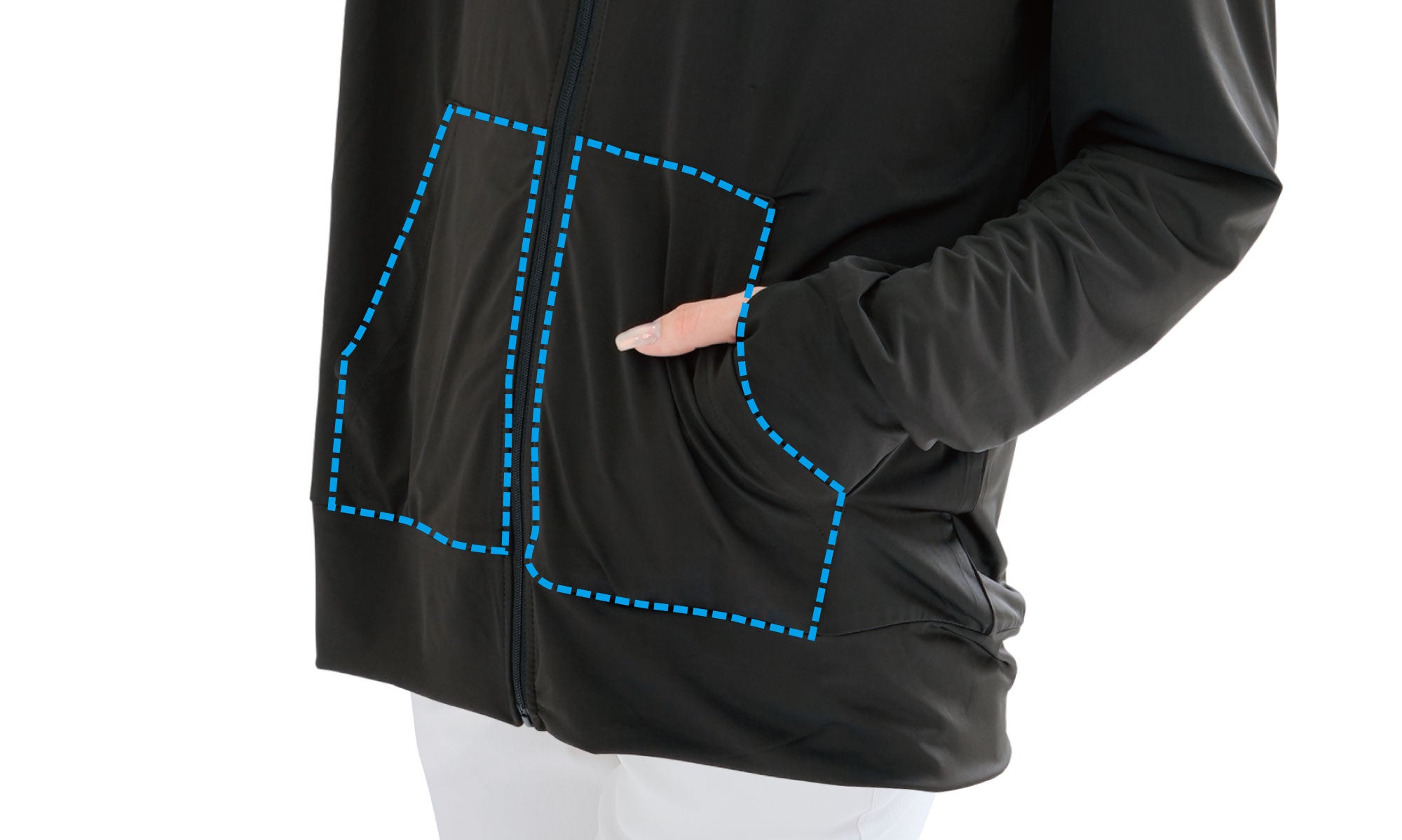 お尻まですっぽりのロングタイプでゆったり着用できます。
