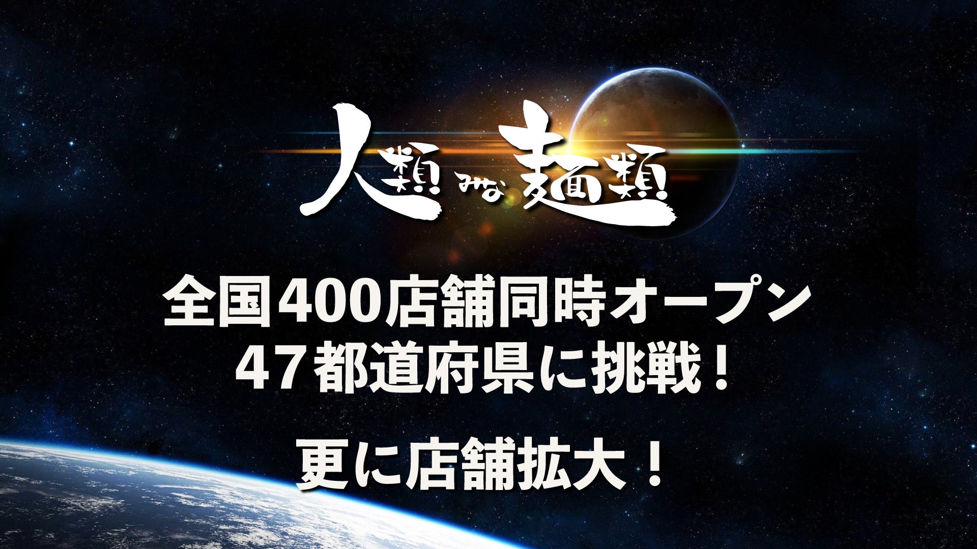 大阪行列ラーメン店「人類みな麺類」を運営するUNCHI株式会社(本社:大阪市淀川区、代表取 締役:松村貴大)が7月末に開始した全国47都道府県で大阪行列ラーメン店「人類みな麺類」を400店舗同時オー プンするイベント「人類みな麺類 宇宙へ!!!」の参加店舗がさらに募り、2024年10月時点で参加店舗が262店舗(※一部店舗は年内に開始)に達しました。