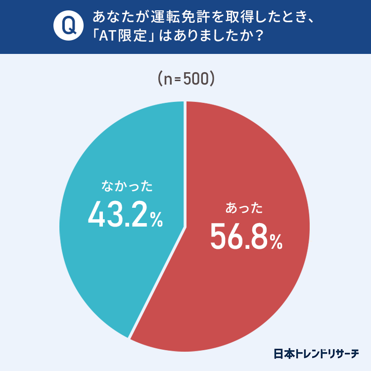 続いて、免許を取得したときに「AT限定」があったかについて聞きました。