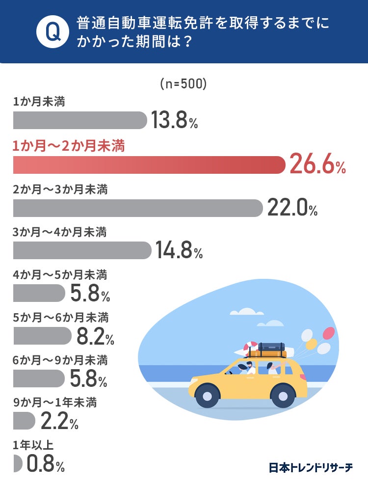 続いて、免許を取得するまでにかかった期間について聞きました。