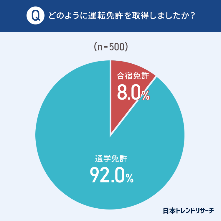 まずは、普通自動車運転免許を取得したことがある全国の男女500名の方に、どのように運転免許を取得したかについて聞きました。