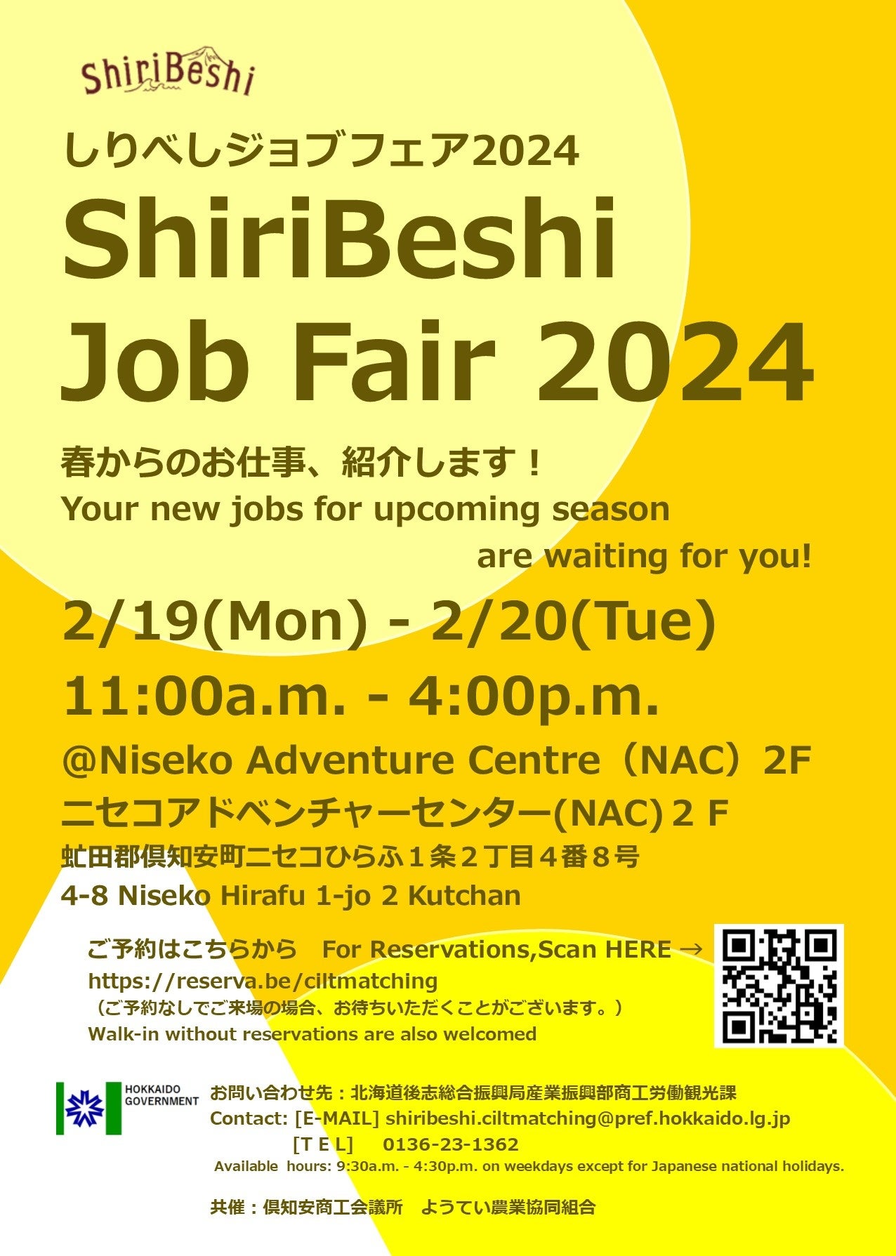 北海道後志総合振興局では、冬期リゾートの豊富な短期就業者を春期以降の地域の求人とマッチングするため、「しりべしジョブフェア2024」を開催します。参加費無料、Zoomでの面談も行っています。また、当日の参加も可能です。