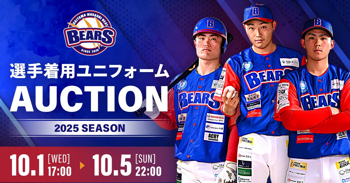 株式会社モバオク(本社:東京都渋谷区、代表取締役社長:小一原 宏樹、以下モバオク)がエンゲート株式会社(本社:東京都中央区、代表取締役:城⼾ 幸⼀郎、以下エンゲート)と業務提携し提供するスポーツチーム公式オークションサービス「スポオク」にて、プロ野球独立リーグ・ルートインBCリーグ所属の埼玉武蔵ヒートベアーズが実施する『埼玉武蔵ヒートベアーズ 2025シーズン ユニフォームオークション』を2025年10月1日(水)から開始します。